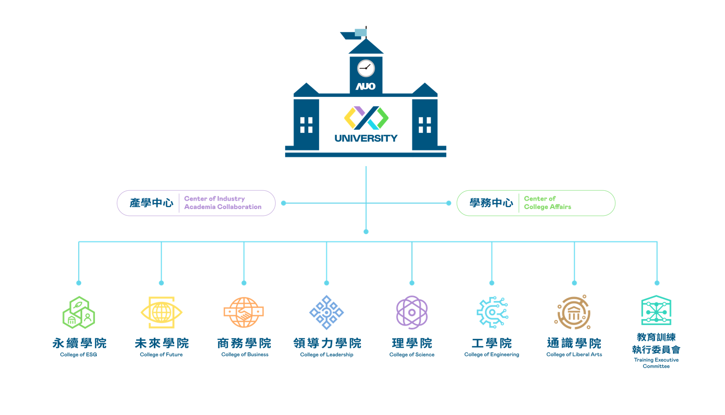 We encourage every AUOer to continue learning, with the AUO University being the best learning center for all AUOers. Based on professional domain knowledge and talent training needs, these 7 colleges form the basis of AUO University: College of Business, College of ESG, College of Future, College of Science, College of Engineering, College of Leadership, and College of Liberal Arts. With diverse learning resources, AUO University inspires all AUOers to create infinite possibilities.