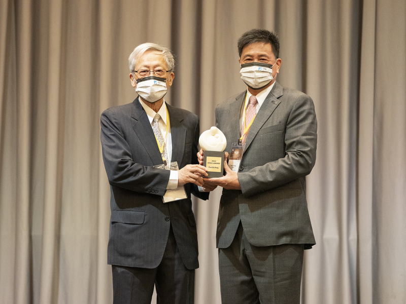 友達董事長暨執行長彭双浪 (右) 獲頒潘文淵文教基金會 ERSO Award,以其推動高附加價值顯示技術,帶動產業升級轉型,獲得高度肯定 (圖左頒獎人:潘文淵文教基金會董事長史欽泰)