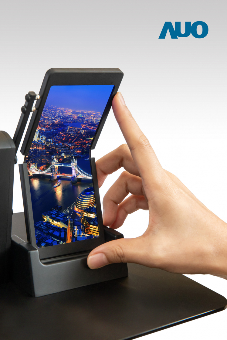 可摺疊 AMOLED 觸控顯示技術 內外摺疊開創無限可能 友達投入可撓式 AMOLED 顯示技術多年,已累積多項製程、材料及面板設計等技術能力。本次展出 5.6 吋摺疊式 AMOLED 觸控面板,兼具向內或向外摺疊,可依照客戶需求靈活彈性調整。採用塑膠基板製程,並整合獨家設計的可撓式觸控屏,在4毫米摺疊半徑下,仍能展現優異畫質,且可連續摺疊超過20萬次,為行動裝置型態開創更多的可能性。