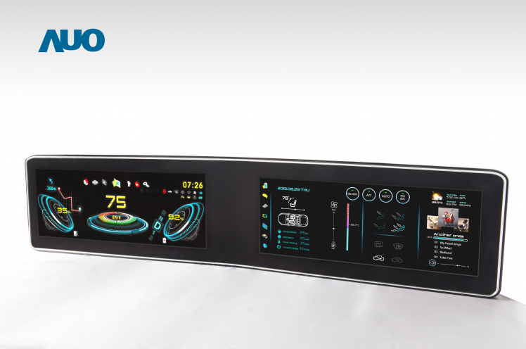 Micro LED 顯示技術 勾勒車載應用新風貌 友達領先業界推出新款具備 169 PPI 解析度的全彩主動式 Micro LED 顯示器,並看好其於車載應用之潛力,鎖定車用市場作為首要切入點。本次展出 12.1 吋 Micro LED 儀錶板面板及 12.1 吋中控台面板,採用 LTPS 背板驅動技術,每個像素均可獨立驅動發光,呈現更極致精細的高動態對比畫質。該款顯示器以小於 30um 的 LED 達到超高像素密度 169 PPI,並強化色彩轉換技術超越 NTSC 100% 的廣色域,呈現高色彩飽和度、高解析及高亮度畫面,便於駕駛隨時讀取重要行車數據。