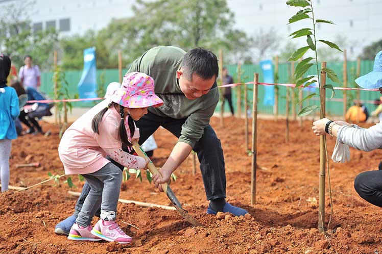 友達光電不斷落實環境永續的理念與承諾,今年是第十屆與明基友達基金會共同合辦「Green Party 綠色嘉年華」植樹活動。舉辦活動十年來,友達與集團企業已於全球廠區累計種植超過 100 萬棵樹,約莫一年可吸收 1.8 萬噸的二氧化碳排放量,相當於 2,500 座標準足球場面積的森林每年的吸碳量。友達今年仍持續以具體行動實踐對環境的綠色承諾,號召達運、隆達、友達晶材等集團公司近兩千名員工和眷屬擔任植樹志工,親手種下山櫻花、馬纓丹及長穗木等樹種,期望藉由別具意義的植樹活動,喚起社會正視節能減碳的重要性。